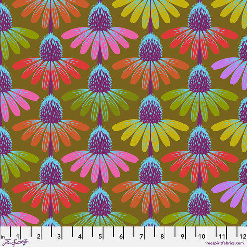 Echinacea Glow Algae is a beautiful Cone flower in Greens and blues on a green background from the Hindsight collection by Anna Maria Horner for Free Spirit Fabrics. You will enjoy using this fabric in your next project.