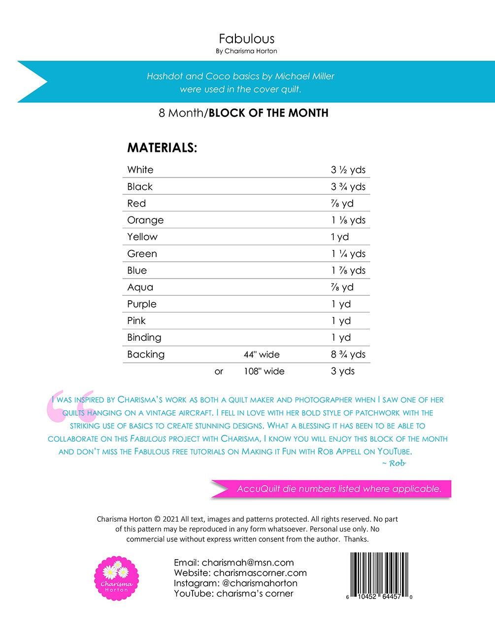 Fabulous 2022 BOM Pattern - Charisma Horton