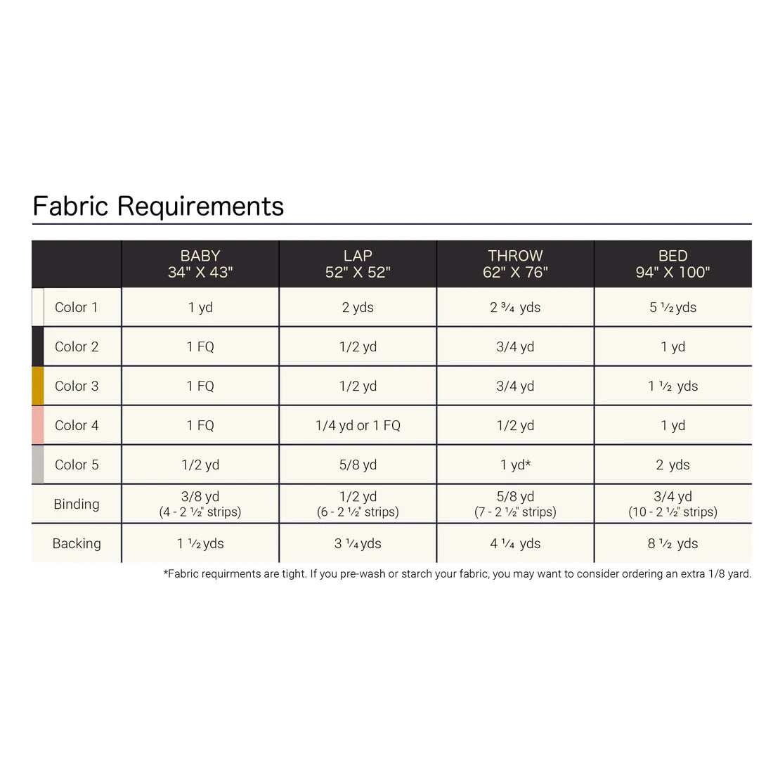 It is a vibrant and bold quilt that is rated as "confident" beginner and assumes that the quilter understands basic quilting knowledge and can keep a consistent 1/4" seam allowance.