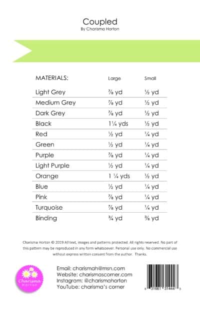 This is a paper pattern for Coupled. I made a series of quilts. All of these patterns have instructions for 2 sizes. 36×48 and 72 X96. All of these designs are Asymmetric, modern and easy to construct. Let me know if you have any questions.