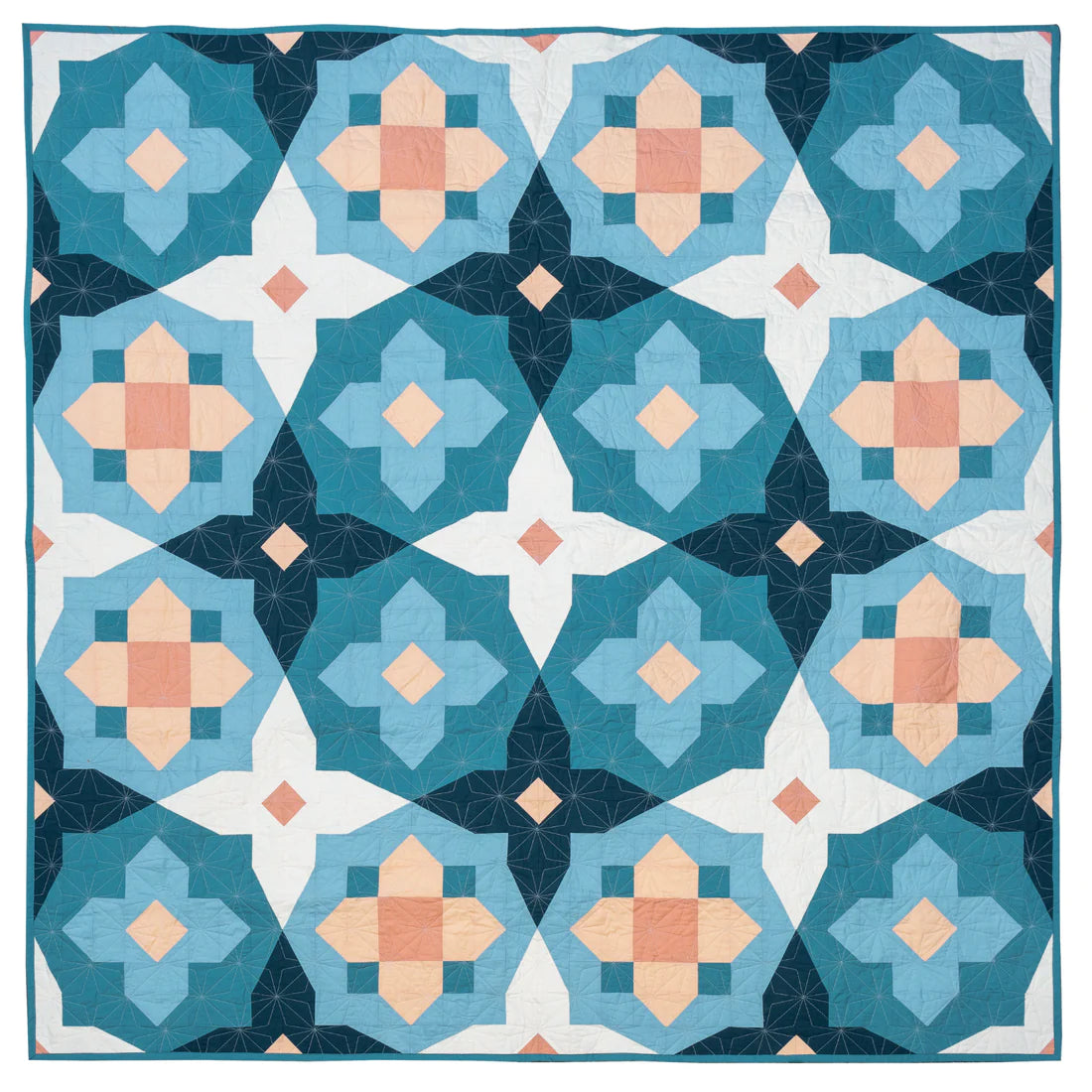 The Garden Glow Quilt is a spin-off design inspired by one of my best-selling and personal favorite patterns, the Sky Cabin Quilt. I wanted to push my creativity further by creating a block-based design that is fat-quarter friendly, drawing inspiration from my adoration for tile floors and intricate mosaics.