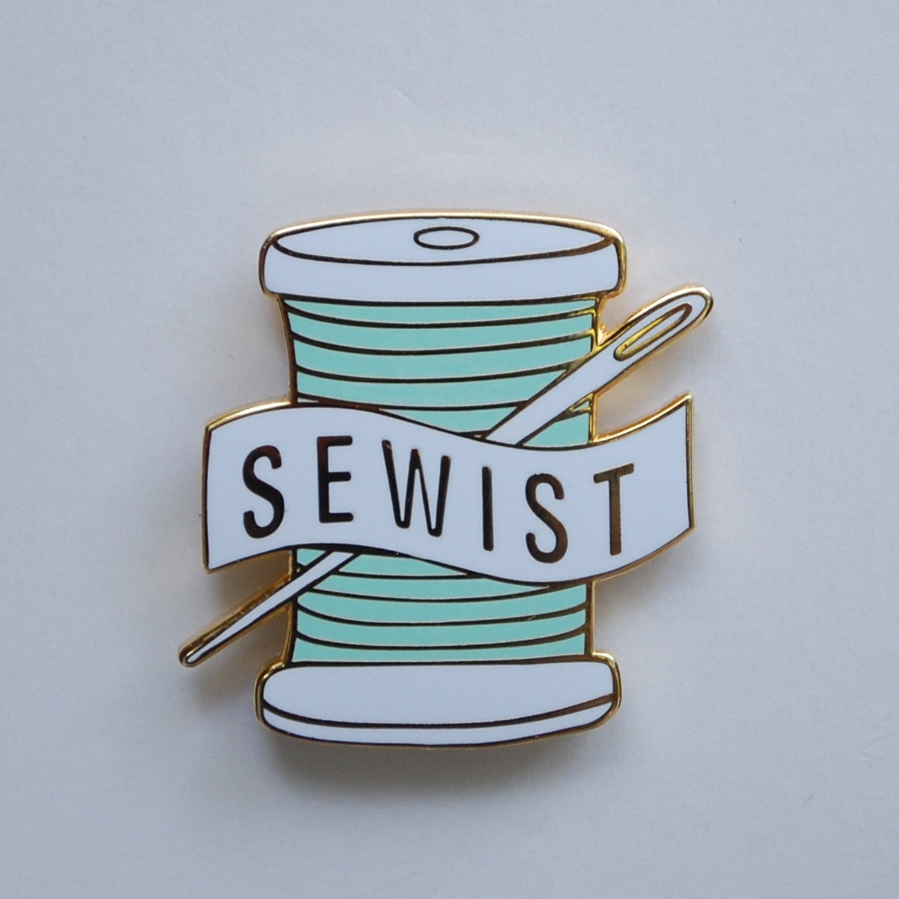Sewist is a brand new word that combines sewer and artist. Its a word that defines the modern sewing movement. Sewists love fabric and thread and the self-expression that sewing can bring. We're creative and unique and proud to say, "I made that." This is a hard enamel pin with gold metal. The pin is approximately 1in tall and includes a sturdy metal backing.