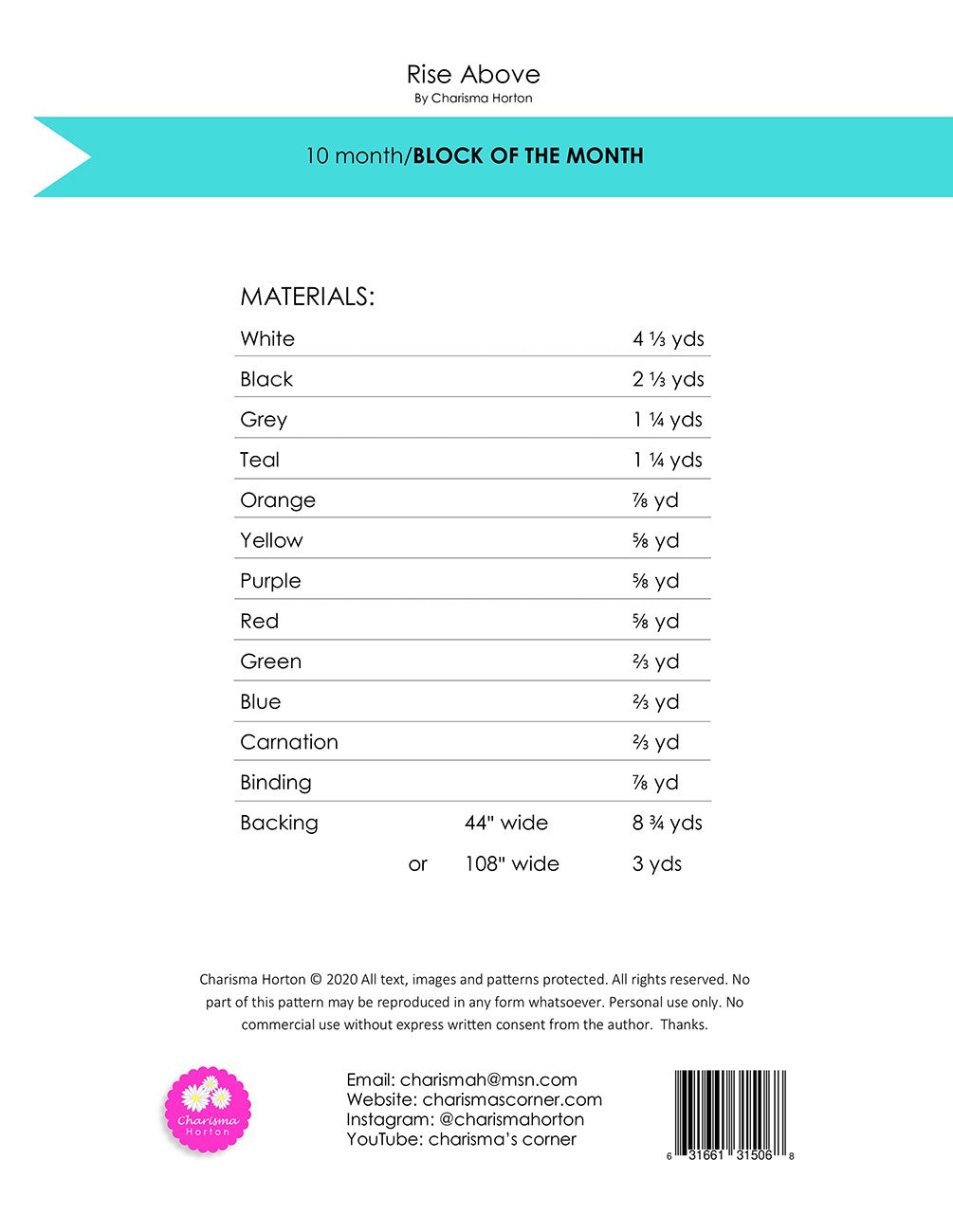 The Rise Above pattern is written in a Block of the month form. It’s a 10 month series. This listing includes the complete pattern to make this quilt. Very easy to follow along and construct with familiar blocks that we all know and love. An off center star as the focal point to give a modern feel.