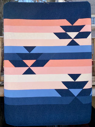 This quilt is wonderfully easy to make and is beautiful in the navy and apricot color-way but you can make it in many other color-ways too!